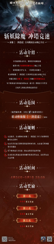 伴随着《暗黑**神:不朽》x《仙剑奇侠传》联动大版本更新,暗黑不朽**修仙服务器【一剑逍遥】现已同步登陆。前往新服创建角色并完成梯度激励活动,即可获得**机会。扫描下方二维码参与**,邮政礼盒、Zippo定制打火机、永恒荣耀礼盒、纪念徽章、大菠萝帽子、角色典藏卡等惊喜好礼正等着你!不仅如此,联动版本上线前预约过新服【一剑逍遥】的玩家在新服游玩,角色**到达10级、50级或累计登录7天,都会再获得一次**机会,让你保持天运加持,始终快人一步。与此同时,新服【一剑逍遥】首周挑战赛也将一并开启,在开服首周参与锁妖塔秘境玩法,每个职业通关时间最短的三名玩家将收获丰厚现金奖励!谁是下一个天命之子?运用你的智慧合理分配有限的资源,不断优化BD,造就**战力,在江湖留下属于你的最速传说!