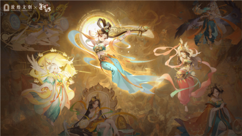 这次的敦煌联动,不仅是被敦煌壁画的神秘传说所吸引,更是希望通过美术的融合,塑造沉浸式的敦煌之旅。与以往的设计思路不同,联动版本的四套神仙皮肤、三套主角变装,灵感皆源自敦煌的壁画形象,通过壁画故事的还原,将古人的浪漫幻想传递给玩家。比如寻迹·飞天变装,就是参考了敦煌112窟中反弹琵琶的飞仙形象,让主角化身香音神女,于大漠苍穹之中演绎来自敦煌的千古乐章。
