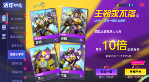 奖池配套上线信物礼包与超值折扣活动。通过信物礼包活动分享游戏领礼券,购买礼包即可超值获得“信物·迷你龙战兽”及**券!同时,通过超值折扣活动可获得额外**折扣,该折扣仅在使用能量水晶**时生效