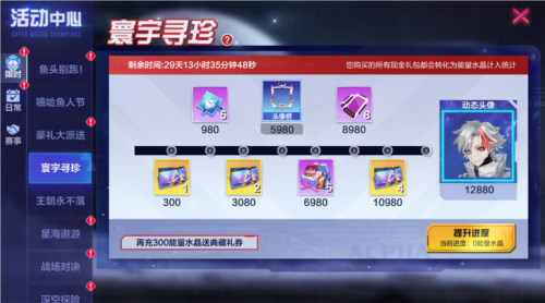 4月3日至5月2日,累计充值5980能量水晶可得头像框“星海远航”,累计充值12880能量水晶可获得**奖励“动态头像:异空漫步”!