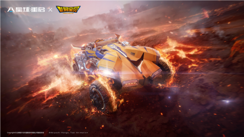联动越野载具【烈火暴龙】的车身覆盖着坚硬的外壳,巨大的犄角野性十足,在战场上呼啸而来,宛如凶猛的暴龙兽扑向敌人!