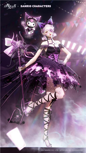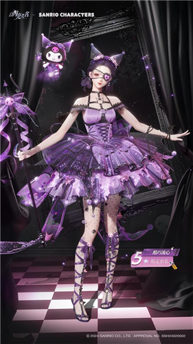 另外一套酷洛米的IP联动时装五星套装酷巧流心则更显俏皮可爱,周身的紫色和黑色点缀,甚至手里酷洛米同款的小恶魔法杖,都在展现着这两个灵动可爱的小家伙的魅力。与玉桂狗联名时装相同,酷洛米同款的时装也保留了最经典的酷洛米手持,甚至在酷洛米悬浮的脚下还有一片紫色的云雾,仿佛在展示着即将前去捣乱的酷洛米的神秘感和十足个性。
