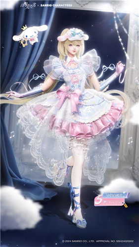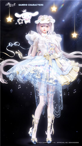 《以闪亮之名》在此次与三丽鸥家族的联动时装设计上也花了非常多的巧思。首先来看这套以三丽鸥家族人气明星玉桂狗为原型的告白奶芙五星套装,粉色、白色和淡蓝色作为套装的主要色系,非常符合温暖可爱的玉桂狗IP角色。最值得称赞的是这套时装的整体设计,从轻盈的白纱、蓬松的裙身、在空中飞舞的飘带以及背后**的两个小翅膀,都在展现着《以闪亮之名》对玉桂狗和三丽鸥家族品牌的理解力。