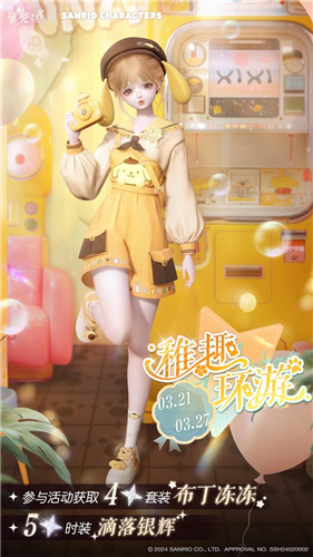 值得一提的是,伴随着版本更新,玩家也可以通过解锁限时追光中的故事和剧情,获得限定三丽鸥家族套装的抽阁券用于抽取酷洛米和玉桂狗联名套装。参与游戏内的稚趣环游活动,布丁狗联动套装就可以免费收入囊中了。不得不说,此次的联动也成了期盼已久玩家们的圆梦联动了。