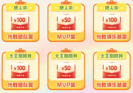 三重红包派送中!在比赛中获得优胜的阵营可获得100元现金奖励,获得MVP的个人玩家可额外获得50元MVP奖,成功举办活动的俱乐部可获得100元优胜俱乐部奖。