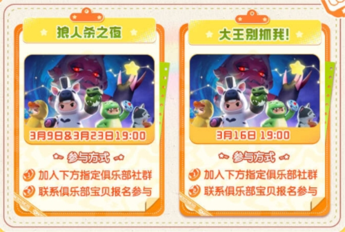 每周六晚19点,狼人杀&大王别抓我交替上场,加入指定俱乐部社群,联系社群内俱乐部宝贝即可报名参加。