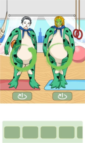 1、首先,你需要找出图中两位穿着青蛙服装身上的绿圈处;