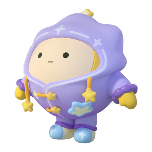 戴上帽子,想象自己是一颗梦幻的紫色小星星。“星梦睡衣”闭上双眼,让意识慢慢沉入深邃宇宙,直到美梦的星光将它拥抱入怀,编织出璀璨又浪漫的梦境。