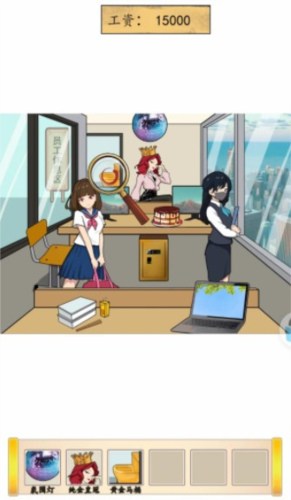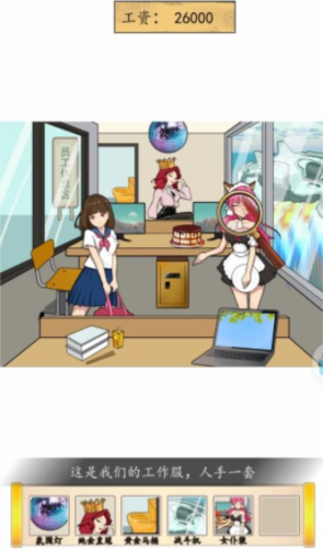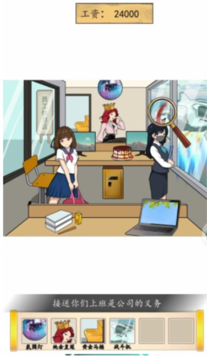 需要把工资打上去,首先移动**,找到工作安排、女仆装、纯金皇冠,然后找到氛围灯、窗外的战斗机、鱼子酱蛋糕、零食如山、人体工学椅、黄金马桶、催眠怀表、按摩专区,**下长按桌子下方的保险箱,点击协议书,找到权益保障,这样即可把工资打上去。