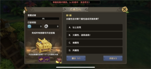 推荐理由:动动手指,经验、道具等直接送!相信“石器百科”是《新石器时代》里最简单的获取经验途径了,这对新手而言,这项日常是必做之一!每日可以进行10次百科答题,只要答对题目都能获得经验值以及石币,如果回答完所有题目这可以领取额外宝箱,还可以获得家族红包,当**达到50级之后,若答题过程中出现回答错误,石币将会减少50%,不过驯兽师每天可以向家族成员救助3次,如此简单的日常任务,所以该项任务请勿错过啦!