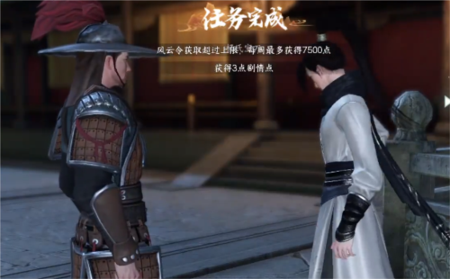 4、交付个杨志之后我们就可以完成任务了,任务完成之后我们可以获得3个剧情点,风云令、燕云泽、五韵谣、1000交子袋;