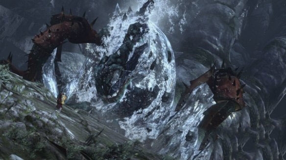 一路上时不时会出现一些倒霉的杂兵在“聚众斗殴”,伴随着的是周遭宏伟巨大的闪电泰坦巨人,这一切都来的太突然……伴随着盖亚的一声惊叫,海神-波塞冬的坐骑“海马”穿透了盖亚的手臂,愕然出现在奎托斯的面前,进入**场BOSS战--海神波塞冬坐骑“海马”: