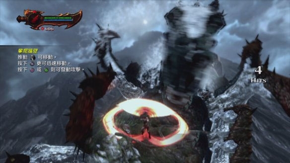 随后镜头转向我们的主角-奎托斯,奎爷**出现在“大地之母-盖亚”的身上,这是玩家的武器**都是MAX,面前出现的一波杂兵当然只是给玩家们热热身,适应一下本次游戏追加的一个“冲锋”(在上面基本操作介绍中有说明)的技能吧,这也许会使得你的战神3旅途变得游刃有余。