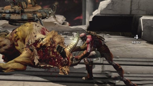 到达巨弩平台上面有个生命宝箱,先不要急着打开,去启动巨弩的时候,背后出现一只奇美拉,这个东西就不用我多介绍了吧,这怪物一共分三个阶段,中途太阳神还会丢火焰来攻击你,地面会有光提示,注意攻击**,不要贪刀解决掉他之后,再去扣动巨弩的机关,在太阳神飞过之后再来的时候,听见太阳神说话的时候射出巨弩击坠太阳神。