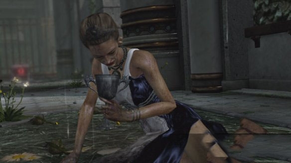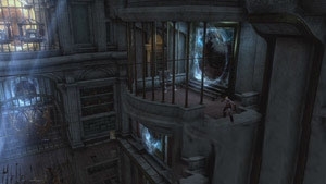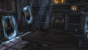 拿完房间内的东西后向下走继续流程存个档抬起大门,出去之后习得魔法“复仇女神盛怒”出来一堆杂兵此时进入魔法**状态,不挺得使用魔法吧,不过感觉这个魔法远不够带劲的,继续向前活到“上层庭院”,在之前坏掉的控制杆处用“复仇凶鞭”攻击坛子给其充能,即可联接道路。