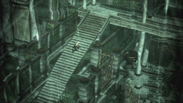 然后进入迷宫,迷宫内的东西很多记得多转转,多转转也不是坏事,**拿完之后到迷宫**位置(左边阶梯未踩下机关之前是不能上的)踩下机关之后整个画面会变绿,你会发现左边那个地面的楼梯和空中的楼梯变成了一个楼梯,禁止往下走跳过一道门从左边上去(如图)
