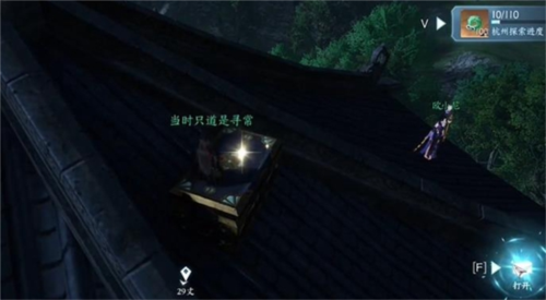 3、在塔顶上摸索一番就能找到图示中的宝箱。