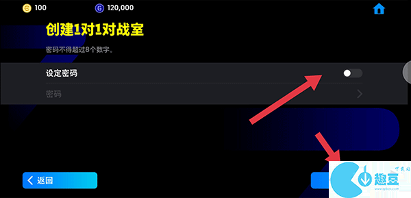 5、如果是自己创建对战室,就点击创建1对1对战室,然后点击创建;