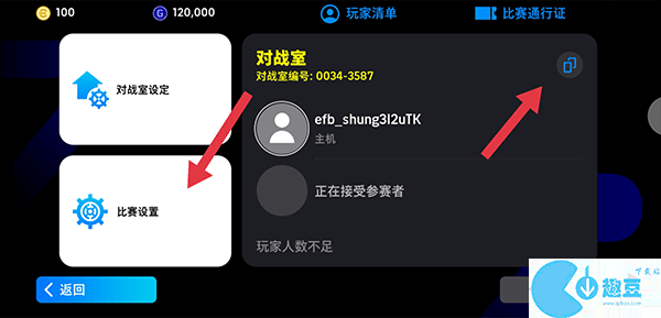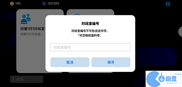 4、将好友创建的对战室编号输入在框中并点击搜寻加入对战室;