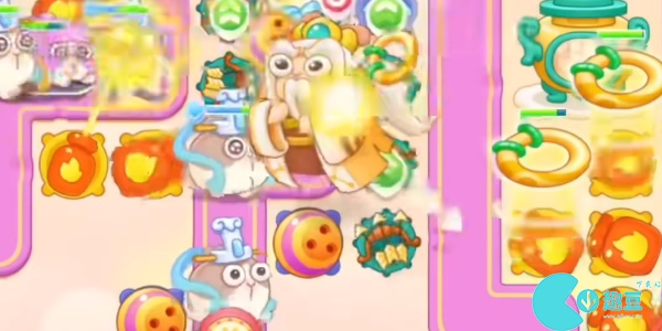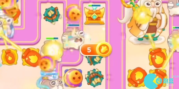 3、等到我们的阵容成型后,我们右侧的火瓶主要打炼丹炉收集丹药,左侧的保龄球范围攻击可以清理场上的小怪。