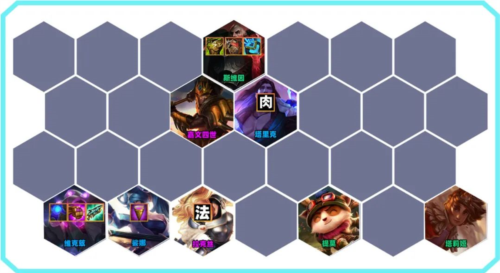 目前T1中的法系阵容,较为克制后排阵容。这个阵容,不是在7人口追3星,除非有转职,因为他全2星强度很高,能直接上8。上8后D出2星拉克丝和皇子,是非常大的提升。缺点是前排薄弱,且很依赖6级D卡,想吃鸡很依赖三星维克兹和三星乌鸦。