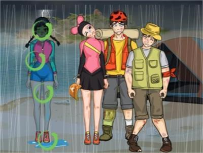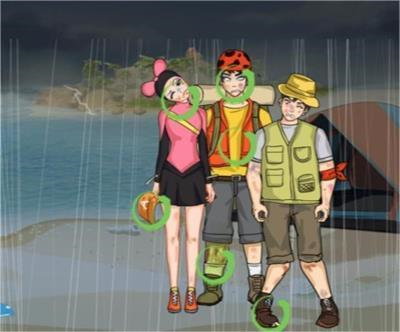 3、这个时候我们将会被带到帐篷外面,我们分别找到以下几处诡异之处:点击白色眼球(把中间男生的护目镜上下移开)、歪头、干净的衣服、帽子、绿色腿、扭曲的脚。