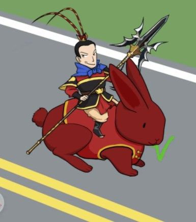 5.兔:吕布(先放),红马甲(后放)顺序不能颠倒,谐音梗赤兔。