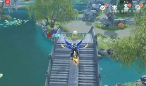 拿了之后我们原路返回,开始收取在假山上的彩蛋。首先走上石阶,第6个彩蛋就在分岔路中间。