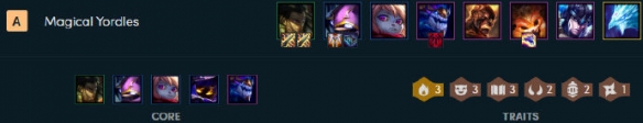 元素使三法约德尔人的阵容主要是让火男去充当这个主C位,给到火男装备以后能让火男更容易的配合团队输出,值得一提的是在9.21版本火男得到了**的加强,所以配合珠光护手能更容易让自己的大招弹出暴击伤害,阵容在三法的羁绊强化下输出也会更强些。