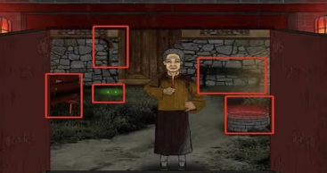 1、首先点击左边红色的屋子,然后点击大门敲门;