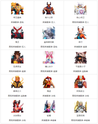 2、英雄纹章:在本赛季可以使用**数量的英雄纹章兑换之前的英雄皮肤。