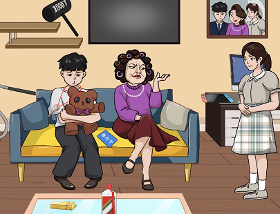 4、用锤子敲击包租婆出现翡翠牙,**点击男生抱着的小熊和墙上的电视剧就可以要回150W通关了。