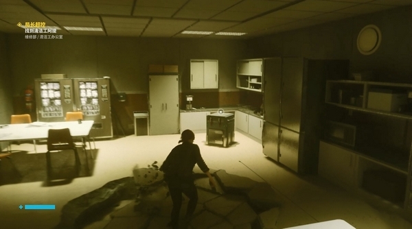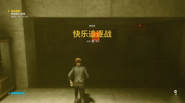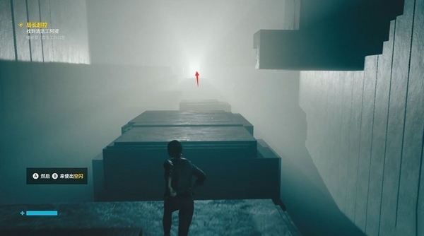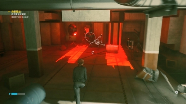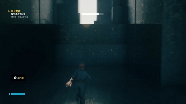 然后来到清洁工办公室,靠近一个闪红光的屋子时会提示“**追逐战”支线任务。做这个支线可以获得闪避能力,非常重要。
