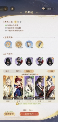 3、在**二层尽量拖到15-20回合(随着回合数的增加敌人的攻击力会下降)这样进入第三层的时候孙权挨打不痛不痒!并且有足够的时间让狮子喵给大家的血量恢复到几乎满血,也能够全员带着大进入第三层上来就猛猛开大。第三层优先攻击那三个戴兜帽的。