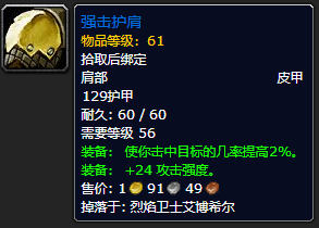 黑石塔上层出品,24攻强 2%命中率让很多人觉得这是一件“神装”,既然这个肩膀的评价如此之高,那么自然而然它的竞争也会非常激烈。