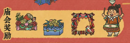 2、游逛丰富的庙会摊位,获取「庙会闹春礼盒」「庙会晚钟礼盒」「庙会头像框」等缤纷的庙会奖励;