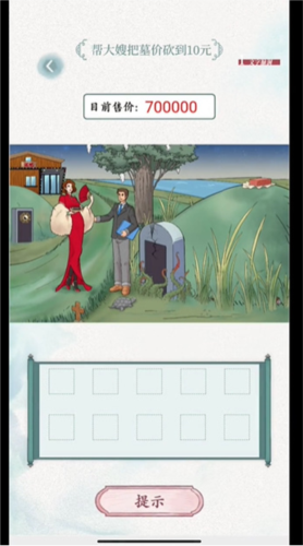 1,首先是了解到这一关是需要帮助大嫂墓地价格砍价到10元。