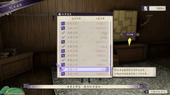 **是这个纹张道具,一个1000Pt,买完后放在角身的道具格子就有效果了,跟武器和防具/介子,分开算。