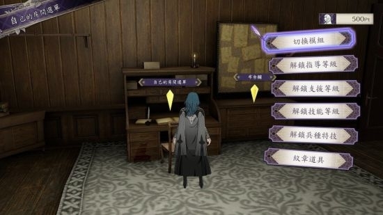 二周目,跑完前期剧情后,到**次散步的地方,在自己的房间多了一个(书桌)选单。