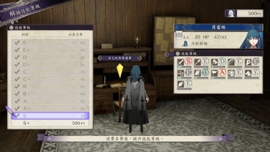 技能**,一等500Pt,我在前期就买到了S剑,升等打怪都快很多,个人建议先找老师帮你把剑升到B以上才开始用Pt解锁,反正前面升很快。