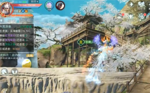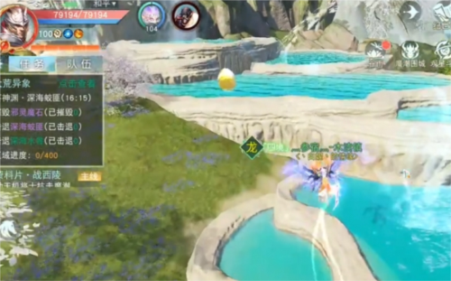 接下来,打开地图传送至寒山寺。传送点出来后,正对着的“莽苍踏浪行”活动的NPC处是第9个神龙秘宝。