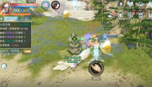 打开地图传送至落神渊,朝寒山寺方向走。在草地上的小石塔旁是**个神龙秘宝,而远处的水台边,还能看见第2个。