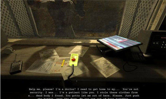帕克在右侧的控制室桌上发现了门禁开关。