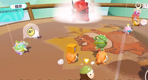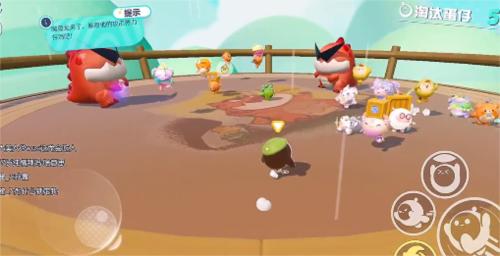 1、这个关卡就是在一个擂台上面完成的,不是跑图的地图哦,开局霸王龙会标记蛋仔把它吃掉,没有被标记的小蛋仔哪怕你站他身边他都不会理你;