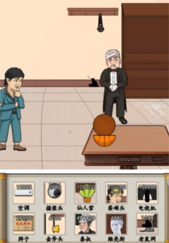 点击篮球,出现泰叔,把安全帽拖给强哥,大孝子-499900(最多);