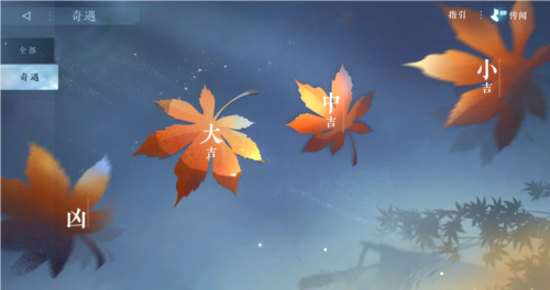 1、点击界面右上角的【菜单】-【开放世界】-【奇遇】页签可以打开奇遇界面,手游奇遇目前共分为大吉、中吉、小吉、凶这四类,但目前凶是没有开放的。