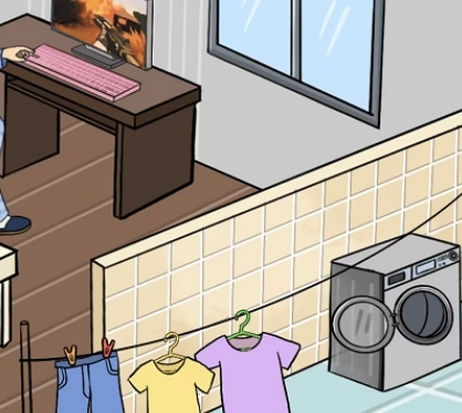 3、衣服洗好后,把**干净的衣服拖到晾衣架上,点击电脑屏幕把电脑关掉;