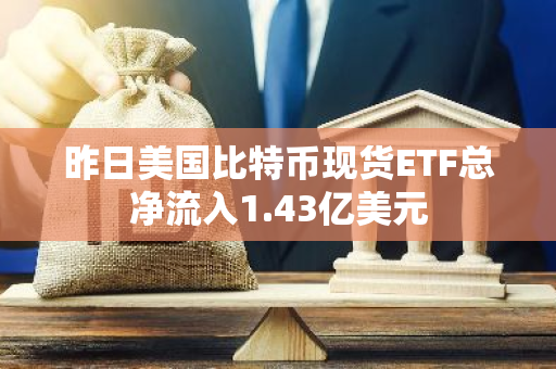 昨日美国比特币现货ETF总净流入1.43亿美元