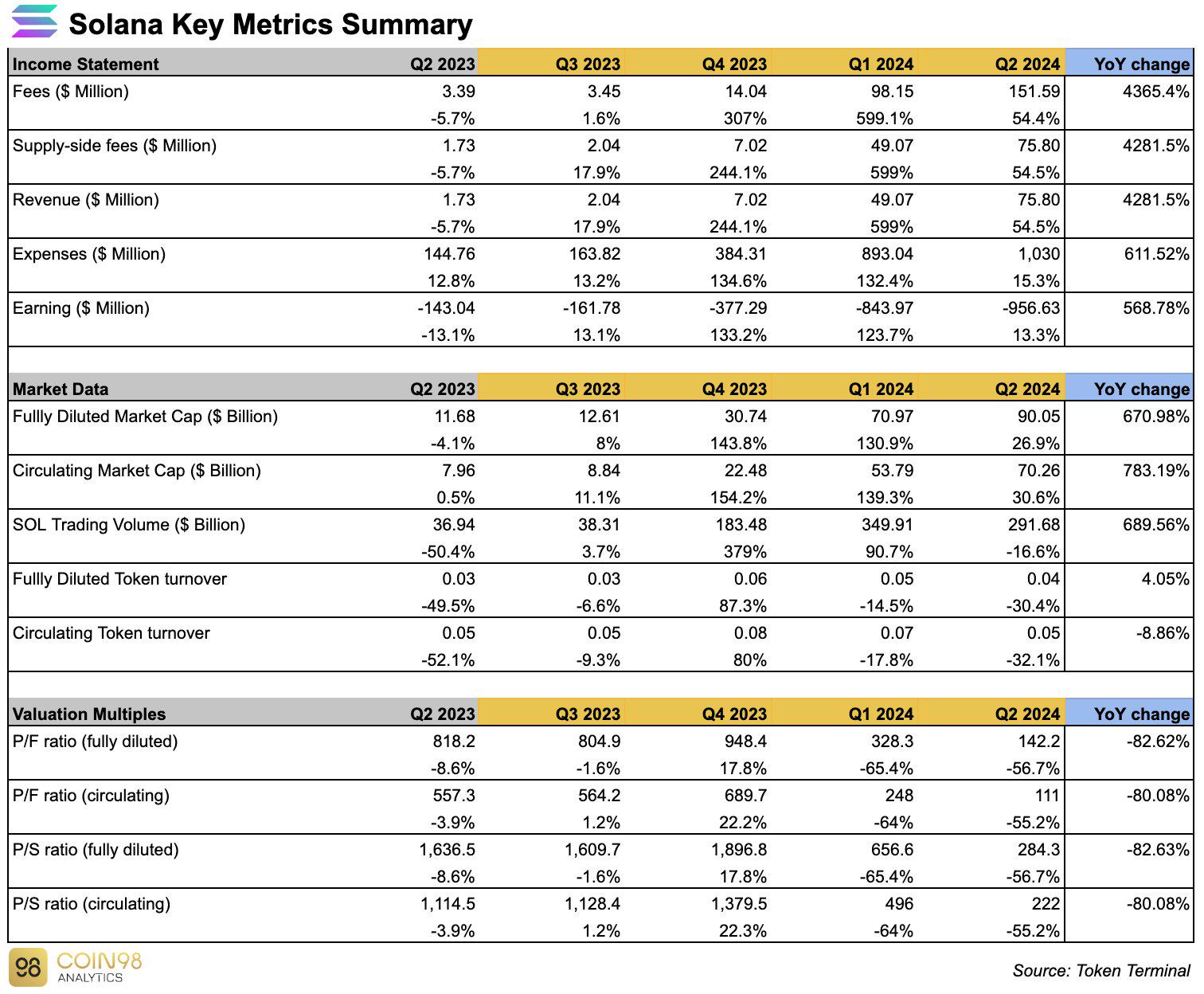 Coin98报告:Solana Q2收入同比增长42倍,SOL交易量同比增长近7倍