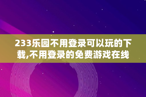 233乐园不用登录可以玩的下载,不用登录的免费游戏在线玩网址